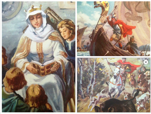 It’s always worth trying to get the oldest copies you can of the earliest books – when the colour-reproduction was most true to Kenney’s artwork. The soft blue hues of Alfred the Great, for example, give a far-away quality to the tale – and make me think of early films in colour.