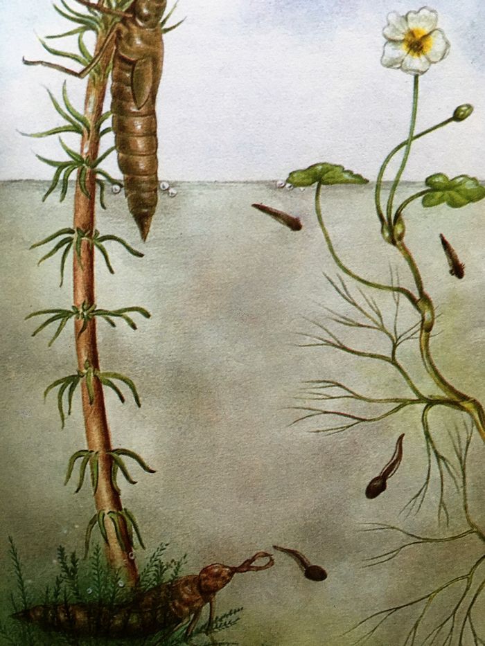 Oh, to have found a hydra, that spindly green freshwater anemone near the back of the book!  I thought I could find anything in the canal, it being just a long narrow pond, bigger than any other.  Everything ought to be in there somewhere, surely.  There were lots of dragonflies, but although they must have been there I never found a dragonfly nymph down in the water, such a scary thing it looked in the book.