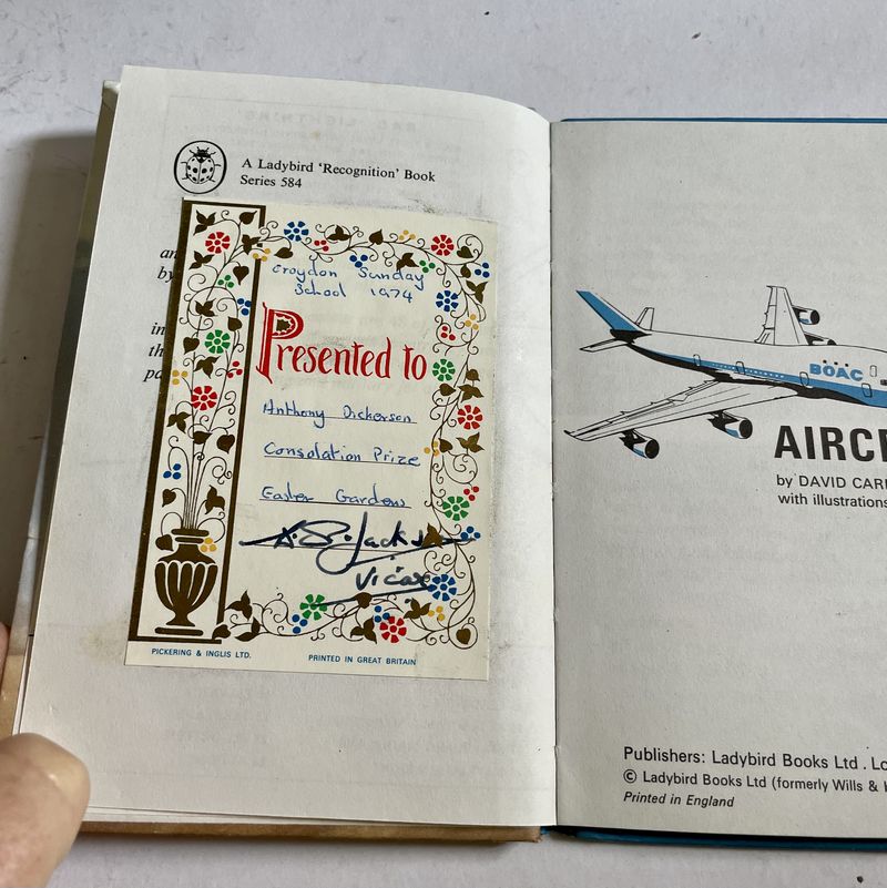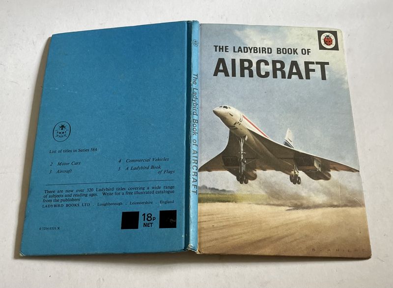 Aircraft, 1968, Series 584. This book was originally issued with a dustwrapper. There were several different editions of this book published as technology changed and Ladybird tried to keep pace. The Ladybird book of Aircraft is a ‘spotting’ book – filled with pictures of different aircraft and the information to identify them. Photograph-like artwork by B Knight.