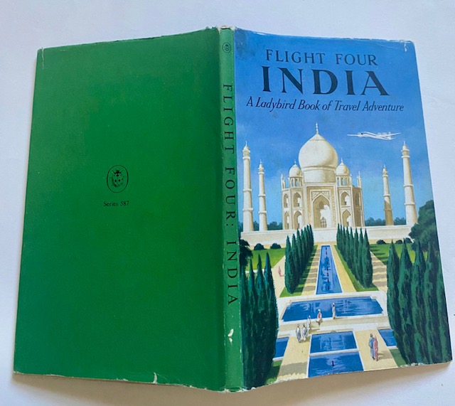 Flight four – India was the 4th of the Travel Adventure series, 587, written by David Scott Daniell and boldly illustrated by Jack Matthew. The series featured two children, Alison and John accompanying Daddy on exciting trips around the world. Alison and John are very eager beavers, always keen to research their destination, study maps and learn more about social and geo-political history. So this makes them fascinating reading today – capturing as it does the lingering assumptions of empire, of Commonwealth and of a burgeoning new world order that still places Britain at its centre. The early versions of the book are to be found with dustwrapper.