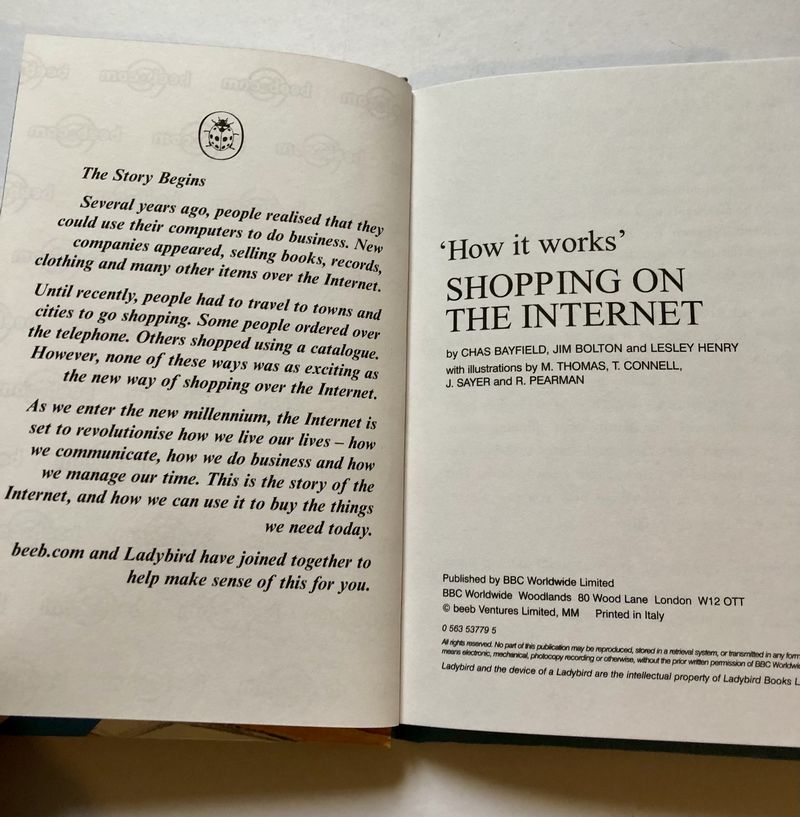 How it Works: Shopping on the Internet, isn’t really a Ladybird book.  But it looks like one because it’s designed to look like one and it’s an interesting anecdote in the Ladybird story – so I include a copy in my main collection.  It was published by ‘Beeb.com’ collaborating with Ladybird books and uses the Ladybird logo.  The idea was to encourage old fogies – us Ladybird children, to get with the beat of the 21st century, put down our wicker shopping baskets and confront this thing called in-ter-net.