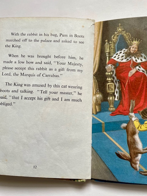 Puss in Boots, 1967.  This book, illustrated by Eric Winter, was the 10th book in the original series of 27 Well-Loved Tales books – but it stayed in print for the longest.   The text, as always in the books of this series, was written by Vera Southgate.