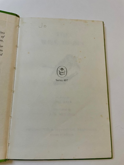 A matt copy in very good condition internally but only fair externally. There are a lot of scars to the cover – especially the edges and bottom back corner -and a patch of loss head of spine. Inside there is some light foxing to the preliminaries – but the pages are still clean and fresh. This copy dates to the 1960s and has the original price of 2/6 printed inside.