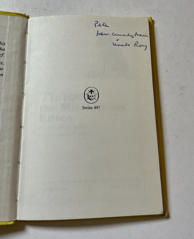 This is a matt copy in good condition but for obvious marks to the cover – front and back (see photos). The front it is speckled with some dark dots. On the back there are also grubby grey marks. Inside, other than an inscription to the front endpapers, the pages are very nice and clean. This copy dates from the 1970s and has an original price of 15p on the back.