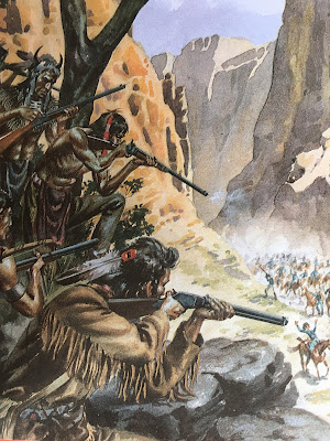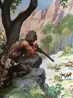 A slightly more subtle example by Frank Humphris can be found in this picture of Alexander Selkirk, ‘The Story of Pirates’ and White Bird Canyon (The Story of Indians).