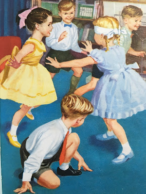 Here is Harry Wingfield making effective use of the set of sketches and photos that he took at a children’s party to illustrate two different books: The Party and The Lord’s Prayer (published in the same year)
